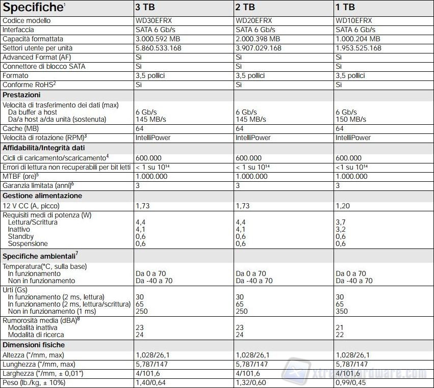 Tutte le specifiche tecniche della linea WD Red sono racchiuse nella seguente tabella.