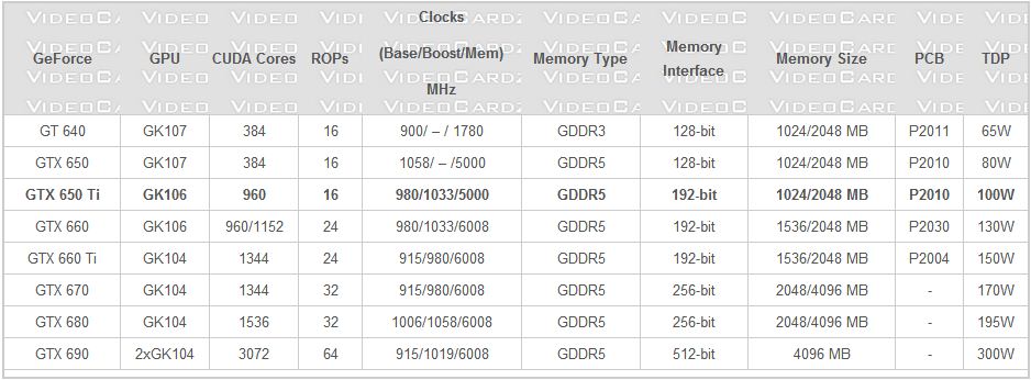 A stilare con maggiori dettagli la lineup delle linea di schede video Kepler GTX 600 è il sito VideoCardz. Le specifiche potrebbero comunque differire dalla versione finale e in particolare non sono ancora certi i CUDA Cores della GTX 660, ma sembra difficile credere che ne mantenga 960 come la GTX 650 Ti.