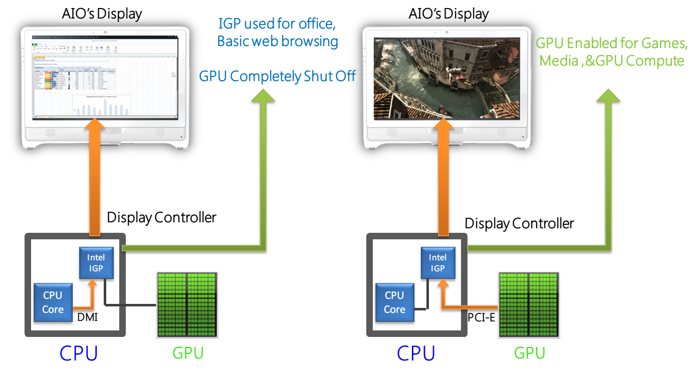 I Wind Top AE2081 e AE2081G presentano il processore di 3 Generazione Intel Core 22nm, il quale incrementa la prestazioni riducendo i consumi energetici. L' AE2081G integra la scheda grafica NVIDIA GeForce GT630M in grado di fornire la migliore esperienza gaming disponibile. Grazie alla tecnologia NVIDIA Optimus, il sistema passerà automaticamente dalla scheda grafica integrata a quella dedicata in base alle prestazioni grafiche necessarie. Questa caratteristiche permette di utilizzare la CPU e la GPU degli All-in-One nel modo più efficiente possibile.
