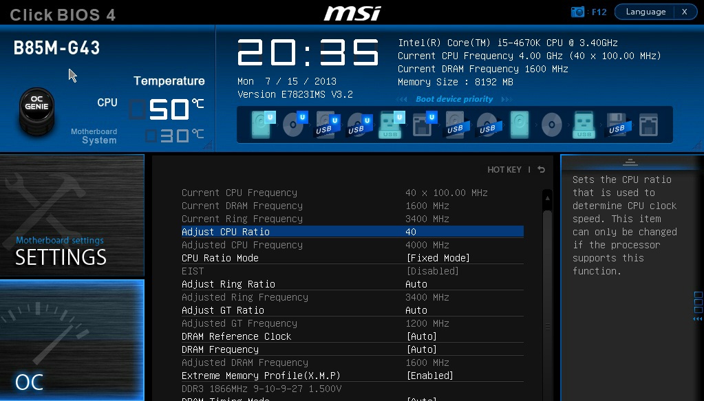 - OC su H87, B85 eH81: quando si usa una CPU K in qualsiasi scheda madre MSI con chipset Intel serie 8 può essere selezionato un moltiplicatore fino a 80x.