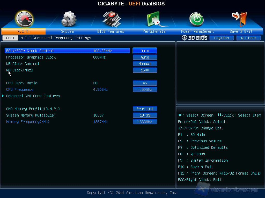 La scheda madre che utilizziamo, la Gigabyte F2A85X-UP4 ci permette di modificare numerosi parametri direttamente dal suo UEFI BIOS, in maniera chiara e semplice.