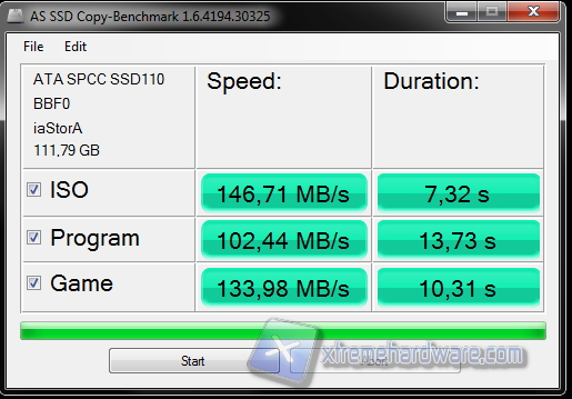 AS SSD Benchmark è un'altro benchmark gratuito studiato appositamente per SSD. Effettua i suoi test sintetici senza adoperare la cache del sistema operativo che va ad influenzare pesantemente i risultati del Transfer Rate, inoltre determina i tempi di accesso del drive sfruttando l'intera capacità del drive stesso. Tutti i test vengono effettuati utilizzando dati non comprimibili.